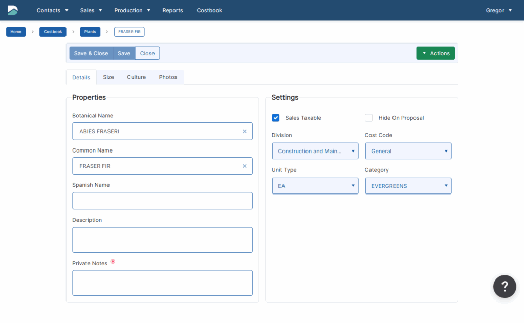 - UI updates for Plant pages: We have continued to enhance the Plants page in the Costbook further. To make it easier to see the relevant information. In the ‘Size’ tab, click in the editable fields to enable editing. The button to add new items is now in the bottom right (as new rows will be added to the bottom). All the available overrides are now in their section. Please send any feedback to support@dynascape.com.